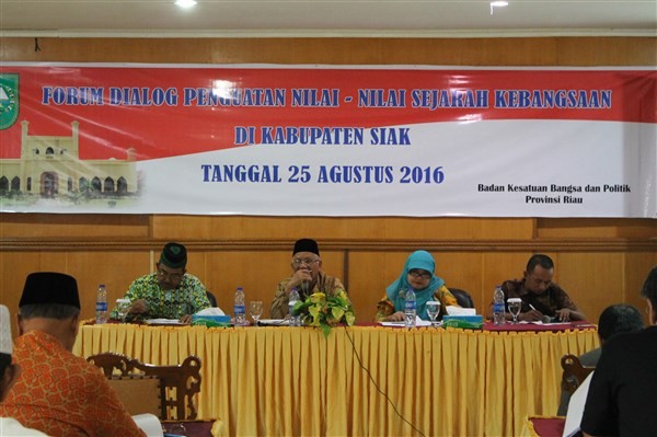 SelengkapnyaSiak, Badan Kesatuan Bangsa dan Politik Provinsi Riau menggelar Forum Dialog Penguatan Nilai - nilai sejarah kebangsaan, di Hotel Yasmin, (25/8) Siak Sri Indrapura. Kegiatan tersebut dibuka oleh Asisten II, Sekretariat ...