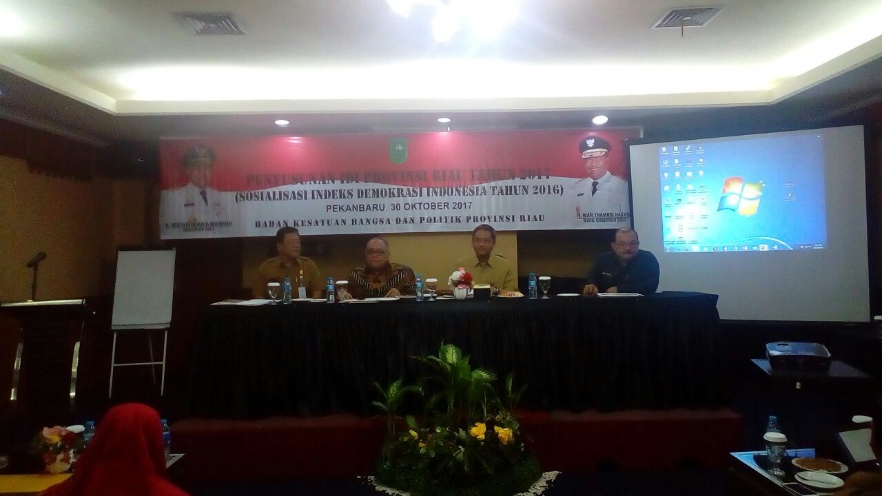 SelengkapnyaPekanbaru, Badan Kesatuan Bangsa dan Politik Provinsi Riau, Senin (30/10) di Hotel Furaya Pekanbaru. Kembali mensosialisasikan Indeks Demokrasi Indonesia (IDI) kepada masyarakat